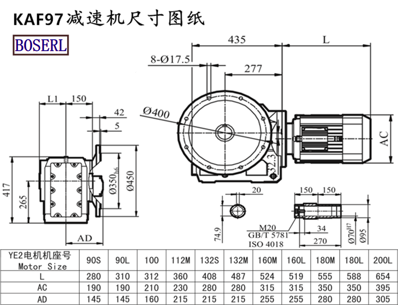 | KAF99D100L4 | KAF99Y180M4 | 二級減速機